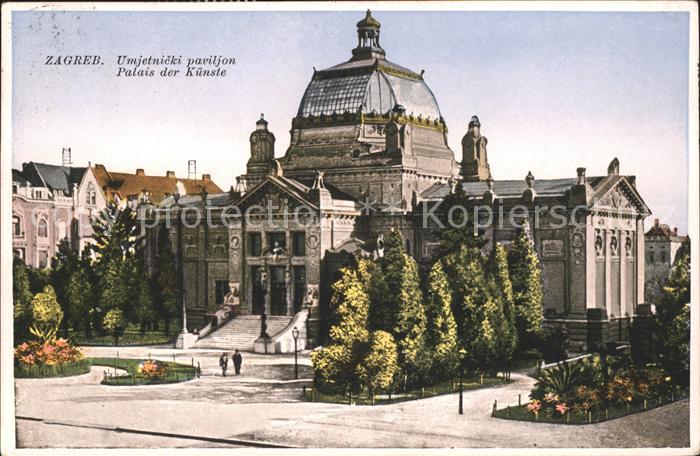 alte Postkarte Zagreb Palais der Kuenste postalisch gelaufen Erhaltung siehe scans
