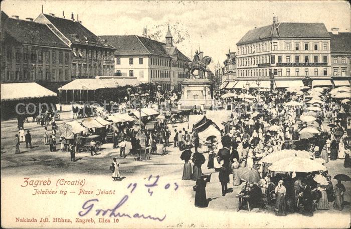 32358780 old postcard Zagreb Place Jelacic postalisch gelaufen Erhaltung siehe scans KatCode: 11260