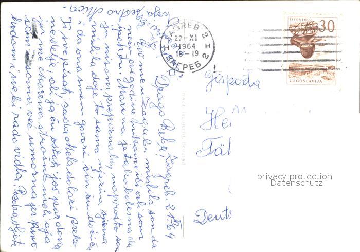 old postcard Zagreb Springbrunnen Kirche Schloss postalisch gelaufen Erhaltung siehe scans