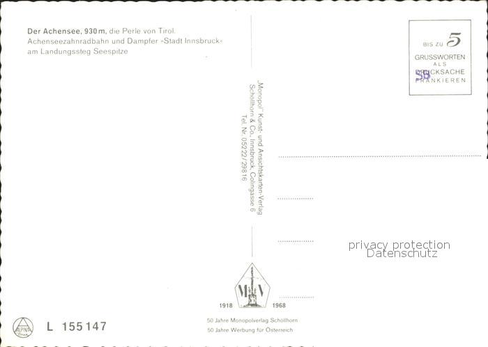 Zahnradbahn Achensee Dampfer Stadt Innsbruck Landungssteg Seespitze postalisch nicht gelaufen Erhaltung siehe scans