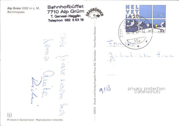 alte Postkarte Zahnradbahn Alp-Gruem Berninapass postalisch gelaufen Erhaltung siehe scans