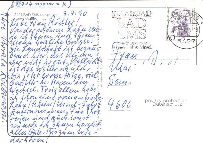 alte Postkarte Zahnradbahn Bad Ems an der Lahn Kurwaldbahn postalisch gelaufen Erhaltung siehe scans