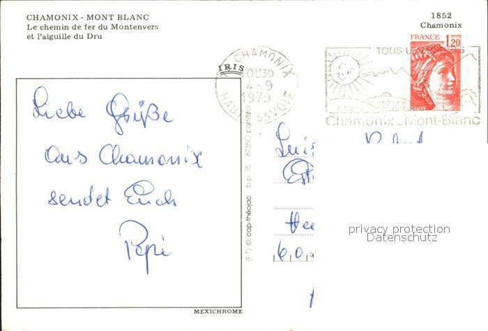 alte Postkarte Zahnradbahn Chemin de fer Montenvers Aiguille du Dru postalisch gelaufen