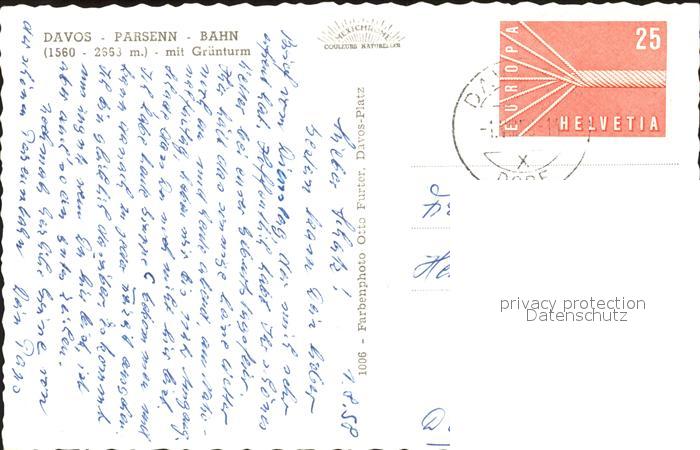 alte Postkarte Zahnradbahn Davos-Parsenn-Bahn Gruenturm postalisch gelaufen Erhaltung siehe scans