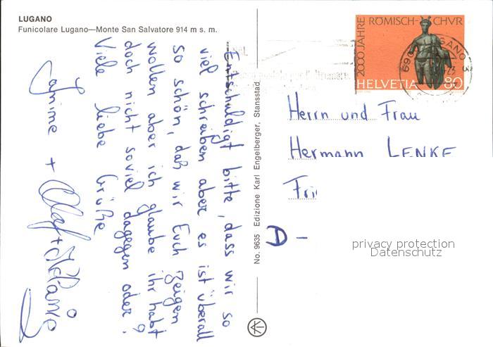 alte Postkarte Zahnradbahn Funicolare Lugano-Monte San Salvatore postalisch gelaufen Erhaltung siehe scans