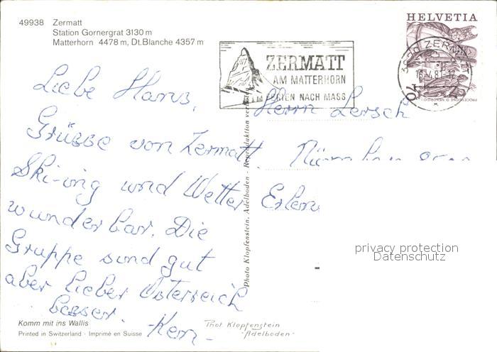 alte Postkarte Zahnradbahn Gornergrat Zermatt Matterhorn Dt. Blanche postalisch gelaufen Erhaltung siehe scans