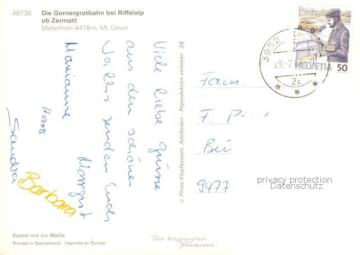 alte Postkarte Zahnradbahn Gornergratbahn Riffelalp Zermatt postalisch gelaufen Erhaltung siehe scans [IrynaD87]