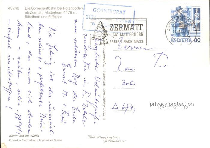 alte Postkarte Zahnradbahn Gornergratbahn Rotenboden Zermatt Matterhorn Riffelhorn postalisch gelaufen Erhaltung siehe scans