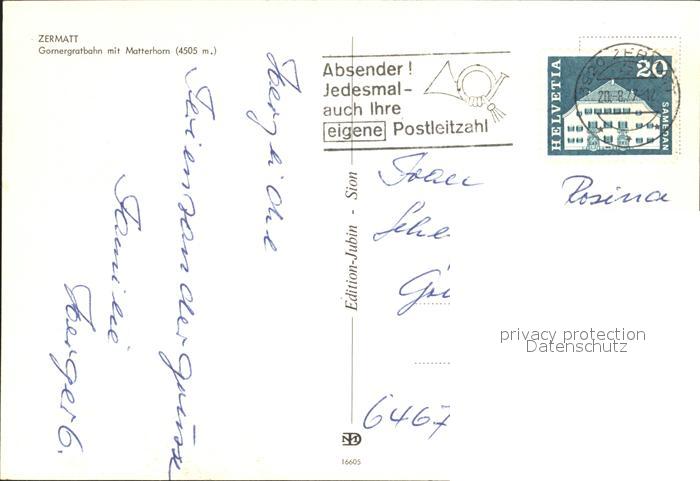 alte Postkarte Zahnradbahn Gornergratbahn Zermatt Matterhorn postalisch gelaufen