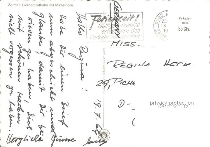 alte Postkarte Zahnradbahn Gornergratbahn Zermatt Matterhorn postalisch gelaufen Erhaltung siehe scans