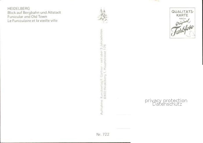 Zahnradbahn Heidelberg Altstadt postalisch nicht gelaufen Erhaltung siehe scans