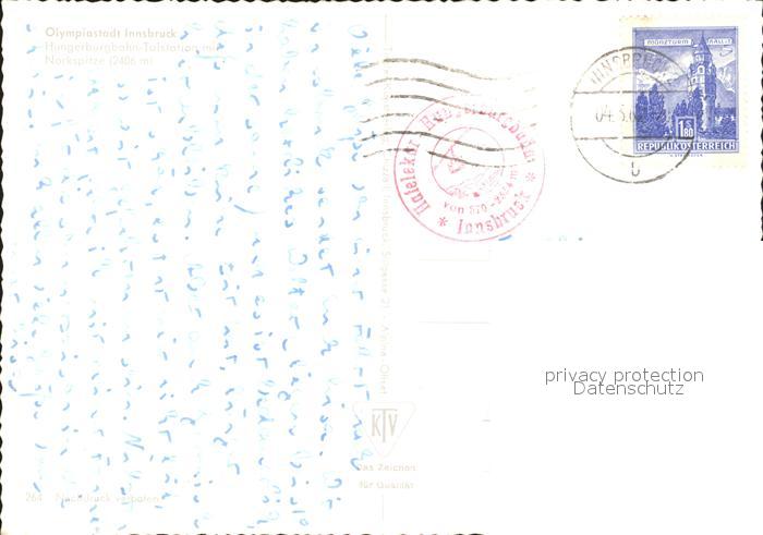 alte Postkarte Zahnradbahn Hungerburgbahn Talstation Nockspitze Innsbruck postalisch gelaufen Erhaltung siehe scans