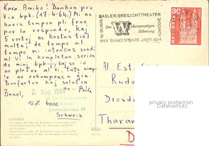 alte Postkarte Zahnradbahn Lugano Funicolare Monte San Salvatore postalisch gelaufen Erhaltung siehe scans