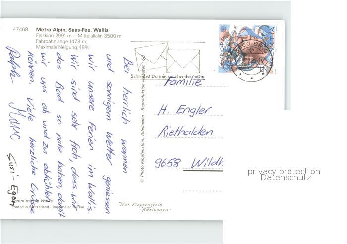 alte Postkarte Zahnradbahn Metro Alpin Saas-Fee Felskinn Mittelallalin postalisch gelaufen Erhaltung siehe scans