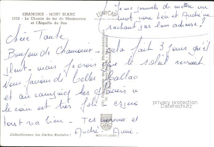 Zahnradbahn Montenvers Aiguille du Dru postalisch nicht gelaufen Erhaltung siehe scans