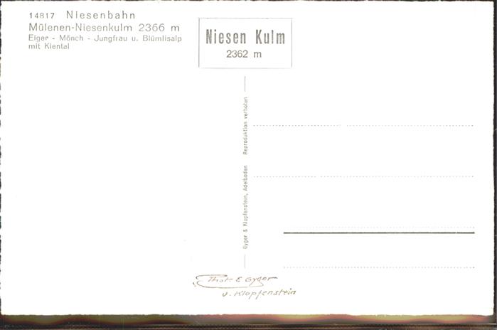11336103 Zahnradbahn Niesenbahn Mülenen Niesenkulm KatCode 22040000000100