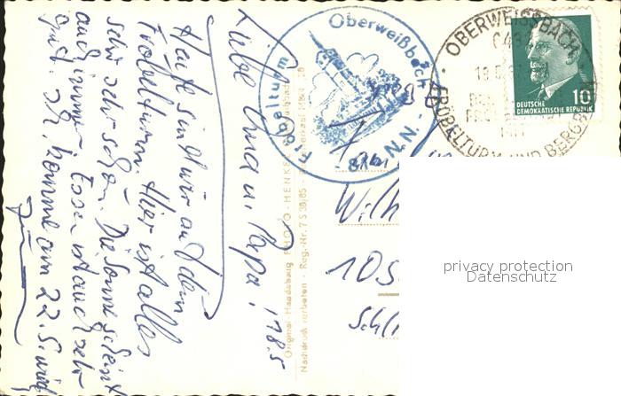 alte Postkarte Zahnradbahn Oberweissbach Froebelturm postalisch gelaufen Erhaltung siehe scans