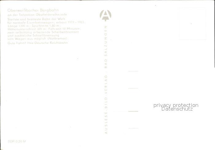 Zahnradbahn Oberweissbach Talstation Obstfelderschmiede postalisch nicht gelaufen Erhaltung siehe scans