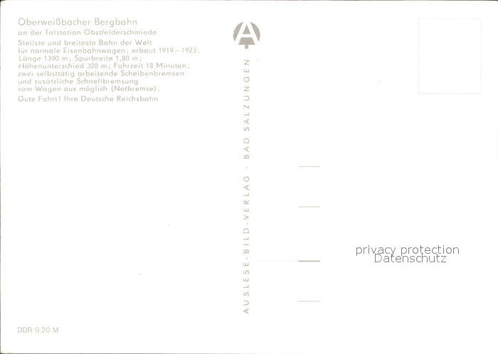 Zahnradbahn Oberweissbach Talstation Obstfelderschmiede postalisch nicht gelaufen Erhaltung siehe scans