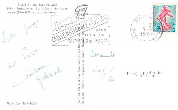 72680752 Zahnradbahn Paris Basilique Sacre Coeur de Montmartre Funiculaire KatCode 22040000000100