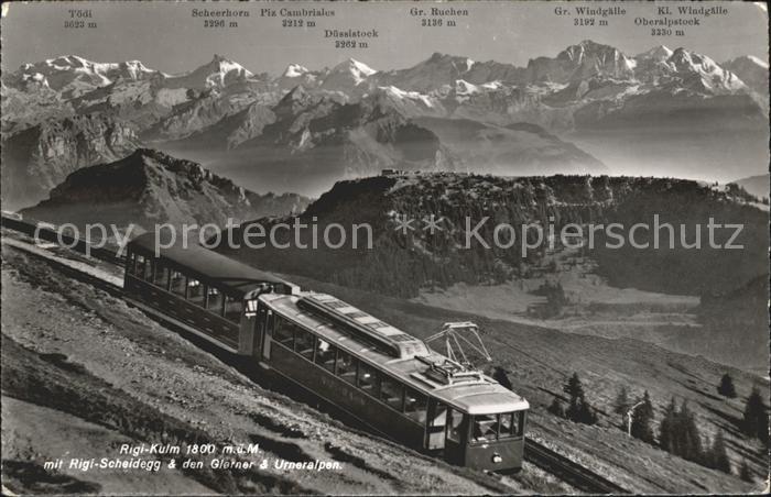 alte Postkarte Zahnradbahn Rigi-Kulm Rigi-Scheidegg Glarner- und Urneralpen postalisch gelaufen Erhaltung siehe scans