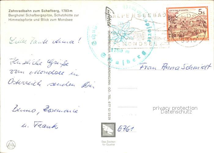 alte Postkarte Zahnradbahn Schafberg Berghotel Schafbergspitze Schutzhuette zur Himmelspforte postalisch gelaufen Erhaltung siehe scans