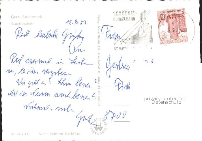 alte Postkarte Zahnradbahn Schlossbergbahn Graz postalisch gelaufen Erhaltung siehe scans