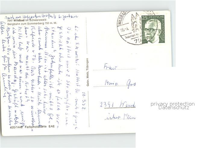 alte Postkarte Zahnradbahn Sommerberg Wildbad Schwarzwald postalisch gelaufen Erhaltung siehe scans