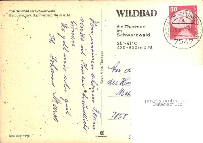alte Postkarte Zahnradbahn Sommerberg Wildbad Schwarzwald postalisch gelaufen Erhaltung siehe scans