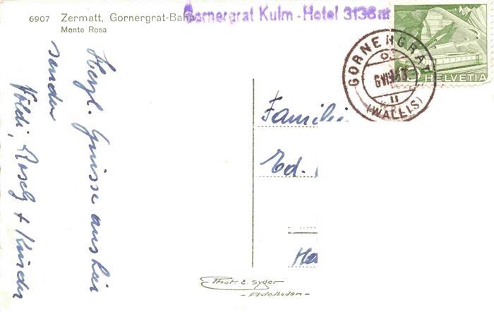 74024777 alte Postkarte Zahnradbahn Standseilbahn Furniculaire Rack Railway– Zermatt Gornergrat Bahn Monte Rosa postalisch gelaufen Erhaltung siehe scans [IrynaD87] KatCode: 22040000000100