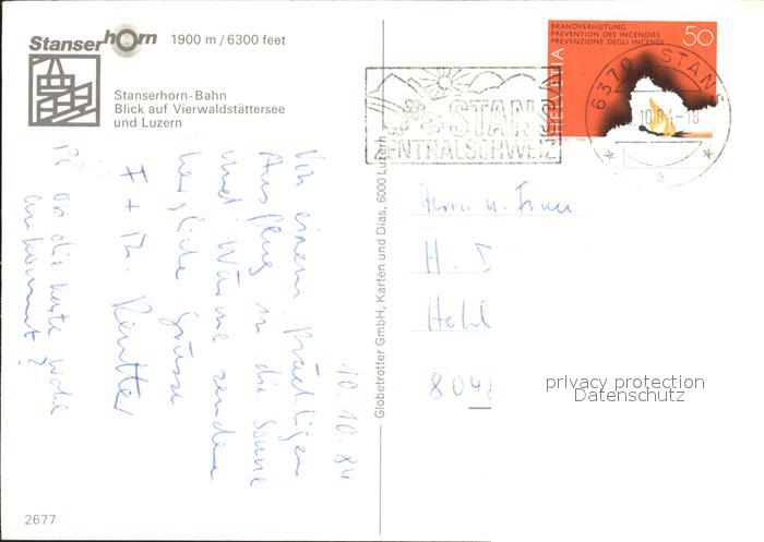 alte Postkarte Zahnradbahn Stanserhorn-Bahn Vierwaldstaettersee Luzern postalisch gelaufen Erhaltung siehe scans