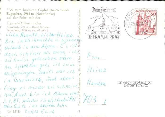 alte Postkarte Zahnradbahn Zugspitze postalisch gelaufen Erhaltung siehe scans