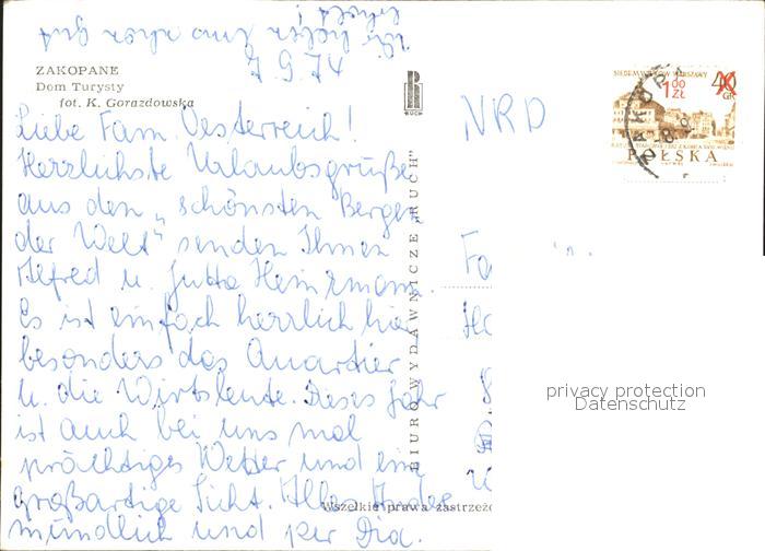 old postcard Zakopane Dom Turysty postalisch gelaufen Erhaltung siehe scans