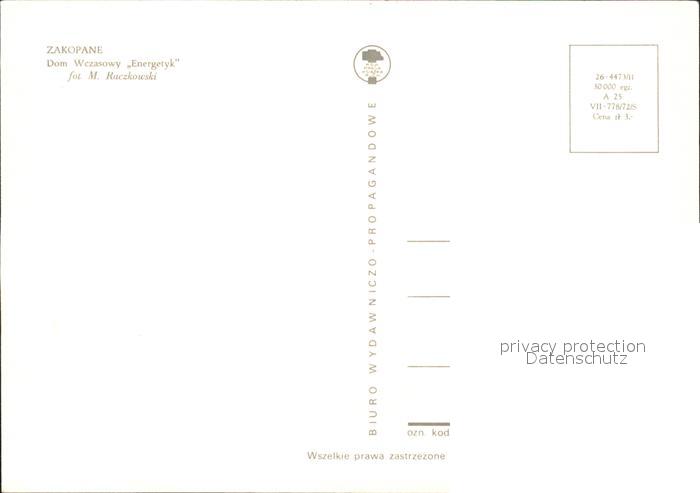 Zakopane Dom Wczasowy Energetyk postalisch nicht gelaufen Erhaltung siehe scans