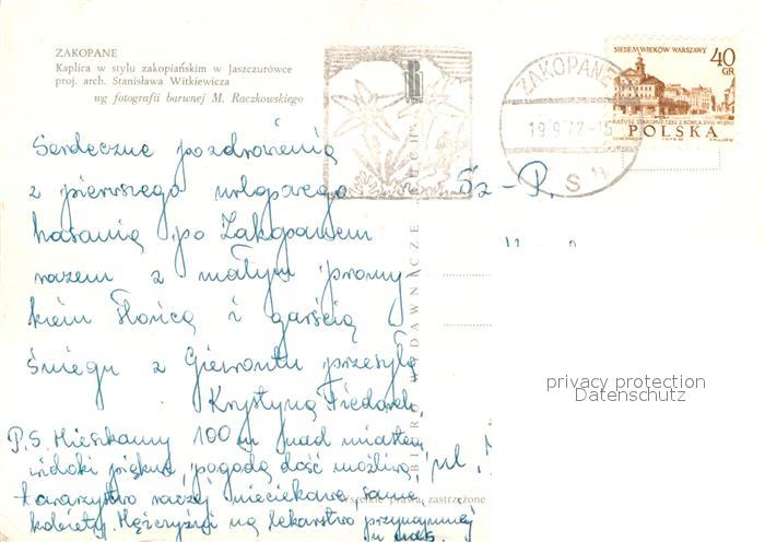 old postcard Zakopane Kapelle postalisch gelaufen Erhaltung siehe scans [KathaD81]