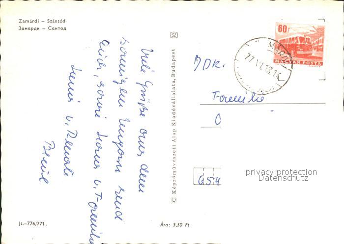 old postcard Zamardi Szantod Zeltplatz Autobus Faehrschiff postalisch gelaufen Erhaltung siehe scans