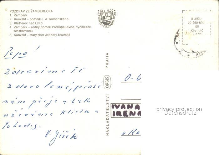 old postcard Zamberk postalisch gelaufen Erhaltung siehe scans