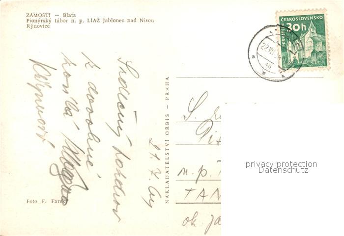13218926 old postcard Zamosti Blata Pionyrsky tabor n. p. Liaz Jablonec nad Nisou Rynovice Freibad postalisch gelaufen Erhaltung siehe scans [FriedD77] KatCode: 11520