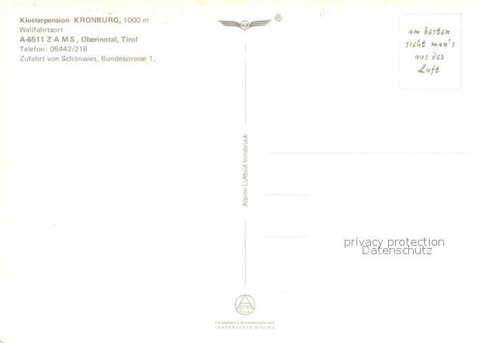 72626672 Zams Klosterpension Kronburg Wallfahrtsort Alpen Fliegeraufnahme postalisch nicht gelaufen Erhaltung siehe scans [FriedD77] KatCode: 11390334070630