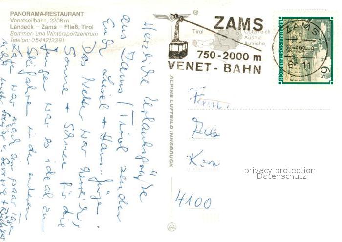 73297685 alte Postkarte Zams Panorama-Restaurant Venet postalisch gelaufen Erhaltung siehe scans [PaolaD17] KatCode: 11390334070630