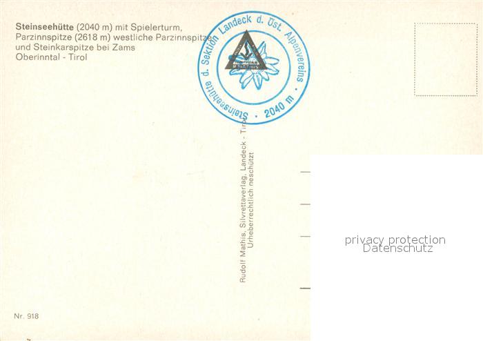 73687598 Zams Steinseehuette mit Spielerturm Parzinnspitze und Steinkarspitze postalisch nicht gelaufen Erhaltung siehe scans [WerneD78] KatCode: 11390334070630