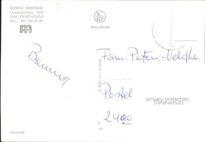 72290093 carte postale Zandhoven Domein Hooidonk postalisch gelaufen Erhaltung siehe scans KatCode: 11070011001274