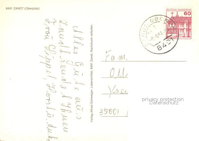 73672164 alte Postkarte Zandt Oberpfalz Panorama Wirtshaus Kirche Wohnsiedlung postalisch gelaufen Erhaltung siehe scans [FriedD77] KatCode: 11110009372177