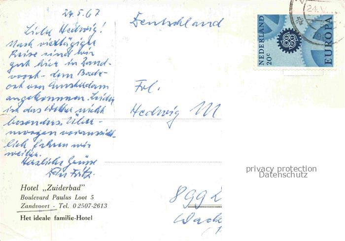 74085035 old postcard ZANDVOORT-AAN-ZEE Noord Holland NL Hotel Zuiderbad postalisch gelaufen Erhaltung siehe scans [WerneD78] KatCode: 11370