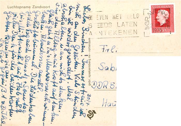 old postcard Zandvoort-aan-Zee Noord Holland NL Luchtopname postalisch gelaufen Fliegeraufnahme Erhaltung siehe scans [FriedD77]