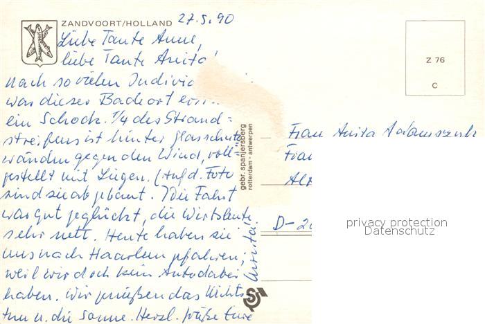 old postcard Zandvoort Holland Fliegeraufnahme postalisch gelaufen Erhaltung siehe scans [KathaD81]