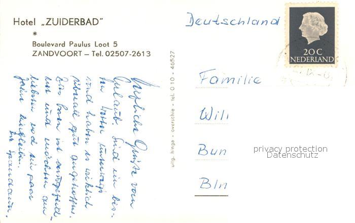 old postcard Zandvoort Holland Hotel Zuiderbad postalisch gelaufen Erhaltung siehe scans [FriedD77]