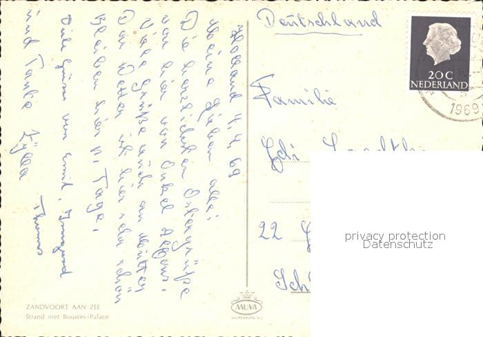 old postcard Zandvoort Holland Strand met Bouves Palace postalisch gelaufen Erhaltung siehe scans