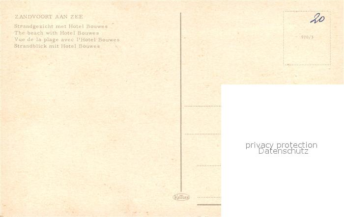 Zandvoort Holland Strandgezicht met Hotel Bouwes postalisch nicht gelaufen Erhaltung siehe scans [FriedD77]