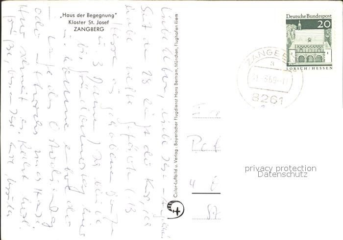 72259374 alte Postkarte Zangberg Fliegeraufnahme Haus der Begegnungen Kloster St. Josef postalisch gelaufen Erhaltung siehe scans KatCode: 11110009183151